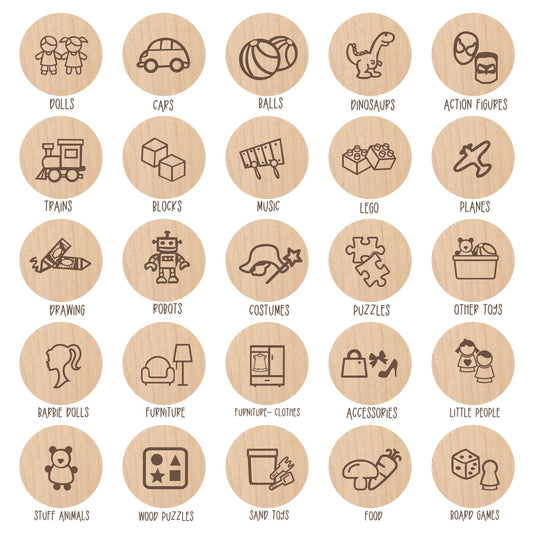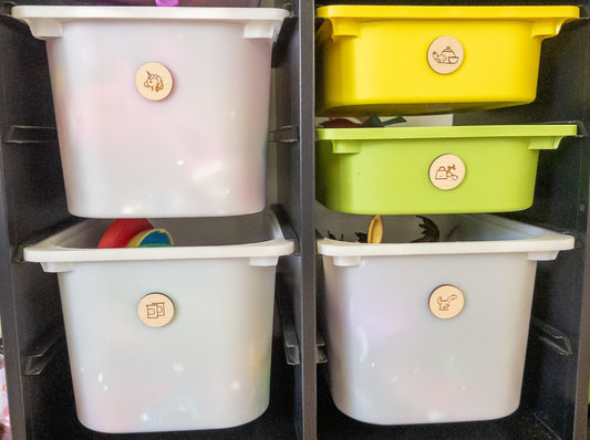 Custom wooden toy storage tags