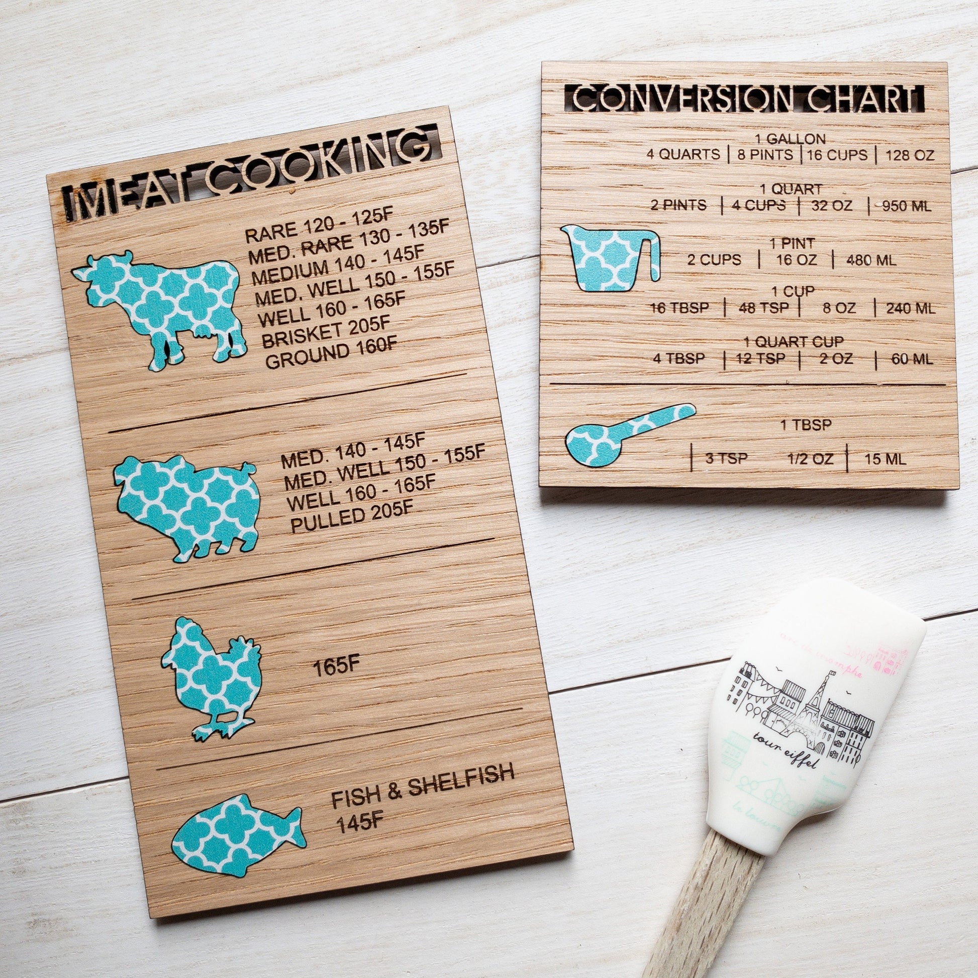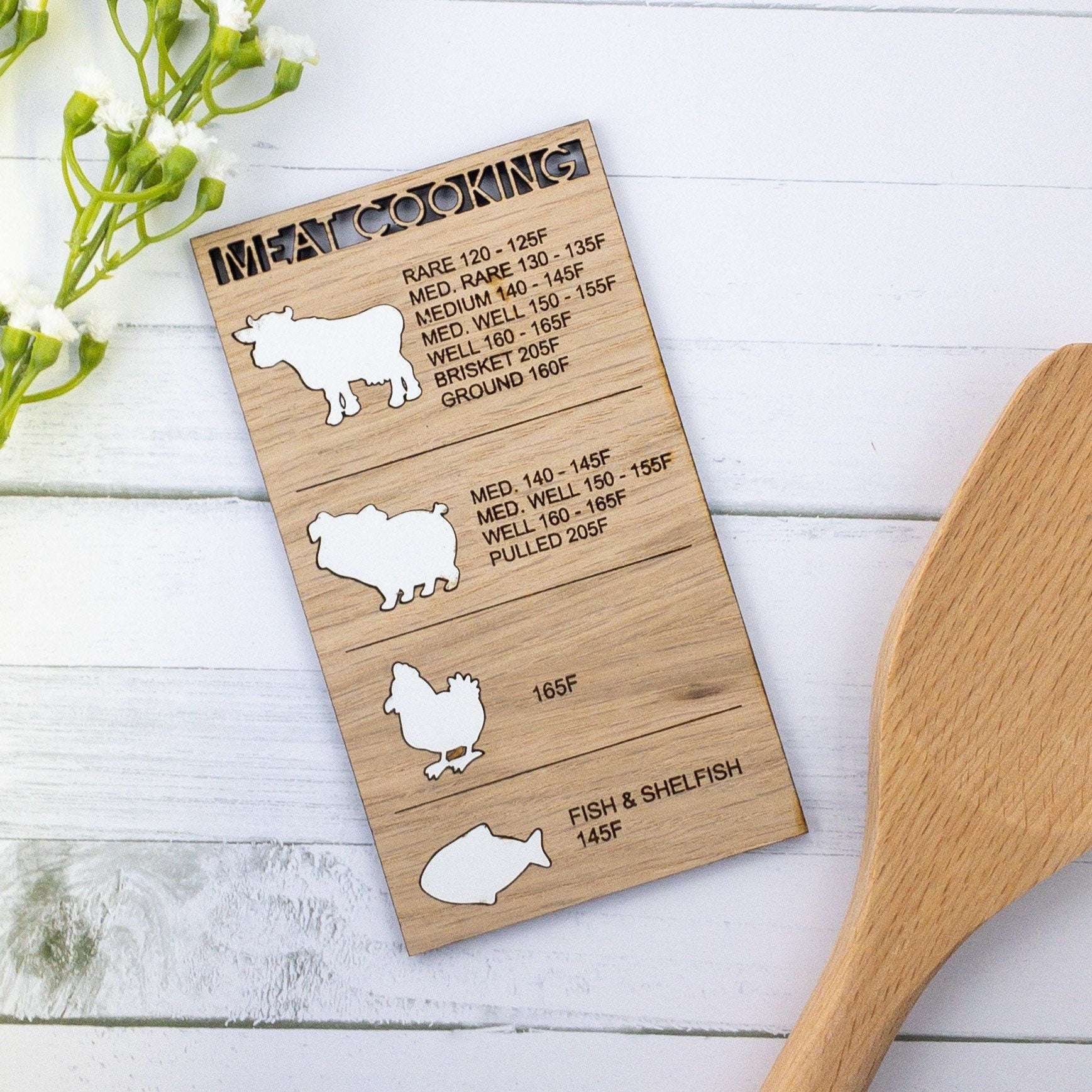 Be the grill or cook master with this handy Meat Temperature Cooking Magnet! Never wonder if your meat is cooked perfectly again - this temperature magnet will tell you when it's time to eat! Its easy-to-read the recommended cooking temperatures for multiple types of meats, making your cooking time a guaranteed success!